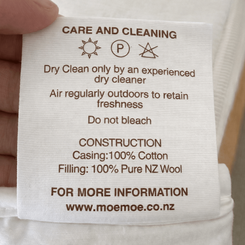 - MoeMoe NZ made Wool Duvet Inner (500gsm): Provides warmth and breathability for a restful sleep throughout the year.